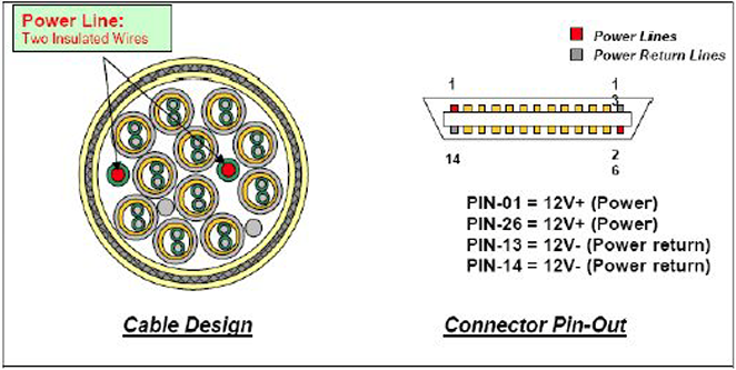 PoCL의 기능 구현 즉, 전원 전송은 Camera Link 1, 13, 14, 26번 신호선 중에