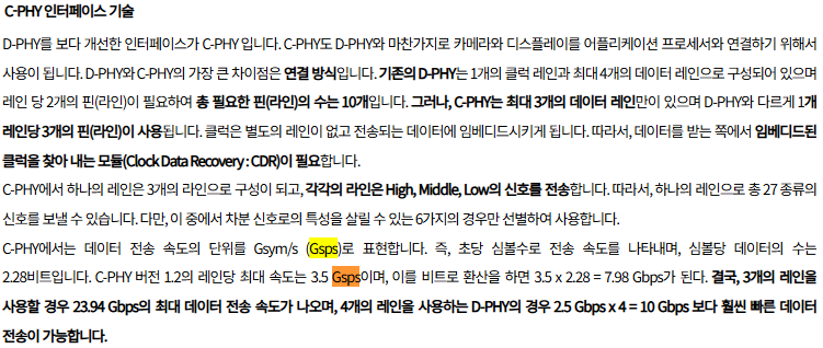 CPHY PDAF 모드란?CPHY PDAF(Phase Detection Autofocus) 모드는 카메라 센서의 CPHY(C-PHY) 인터페이스와 위상 검출 자동 초점(PDAF, Phase Detection Autofocus) 기술을 결합한 방식입니다.1. CPHY란?CPHY는 MIPI(CSI-2) 표준을 기반으로 한 고속 데이터 전송 방식으로, 기존의 DPHY(D-PHY) 방식보다 효율적인 데이터 전송이 가능합니다.DPHY vs. CPHY 비교DPHY: 병렬 데이터 전송 (1개 라인당 2개의 전송 채널)CPHY: 3개 신호선을 활용한 차등 신호 방식으로 더 높은 대역폭과 저전력 소모 가능2. PDAF란?PDAF는 이미지 센서에서 위상 차이를 이용해 초점을 빠르게 맞추는 자동 초점(AutoFocus) 기..